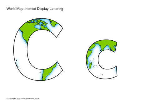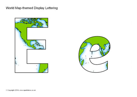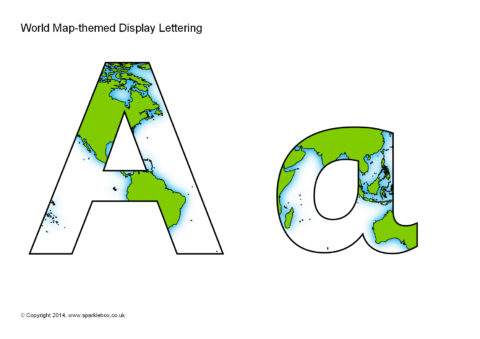 A set of cut-out letters themed with a world map. Cut out and use to make headings on your classroom displays.