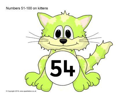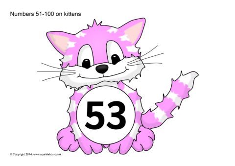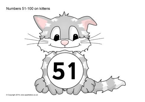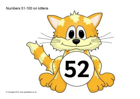 The numbers 51 to 100 presented on fun kitten characters. An extension to our existing Numbers 0-50 on kittens resource.