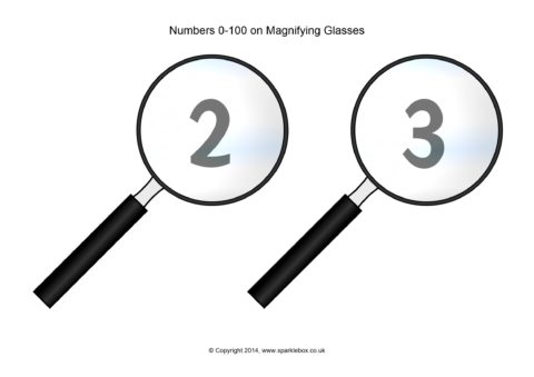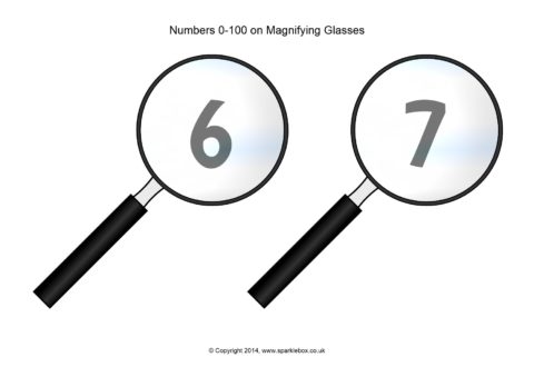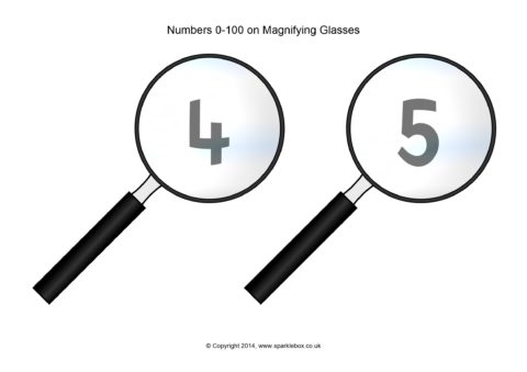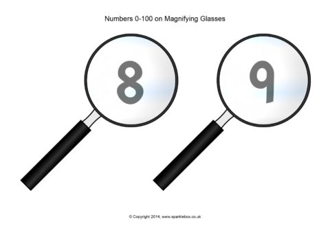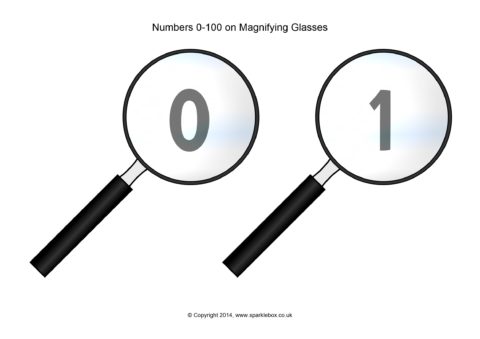 Numbers 0-100 on Magnifying Glasses (SB11007) - SparkleBox