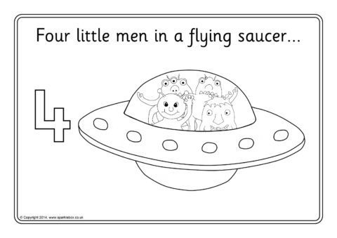 Five Little Men in a Flying Saucer Colouring Sheets (SB11032) - SparkleBox