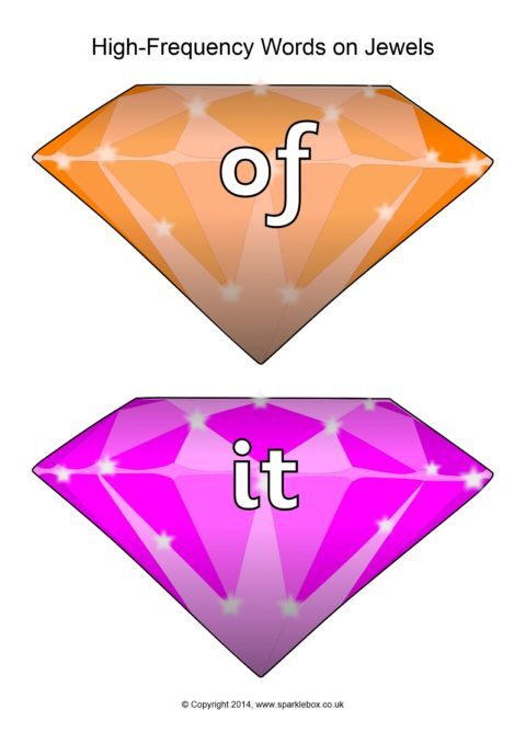 The 100 high-frequency words presented on various coloured jewels/gem stones.
