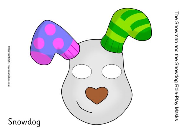 A fun set of printable masks for role-play linked to the popular Christmas story/animation, ‘The Snowman and the Snowdog’. Simply print out, laminate, cut out and attach to lollipop sticks.
