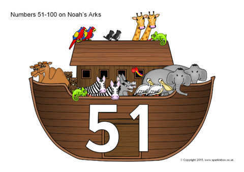 Numbers 51-100 on Noah’s Arks (SB11115) - SparkleBox