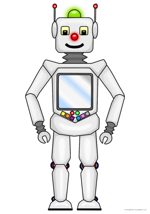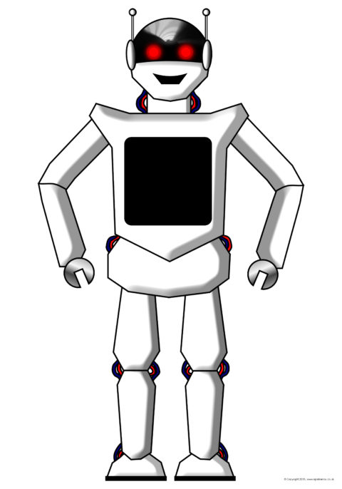 Two large printable robot pictures that print over 8 landscape A4 pages.  Assemble them on your classroom display for great visual impact!