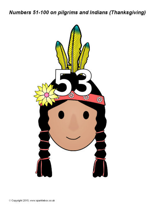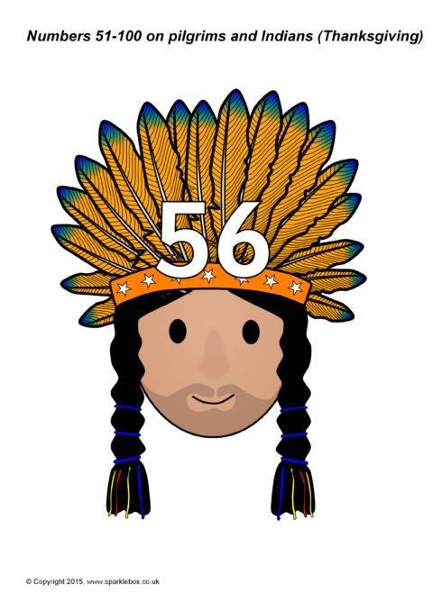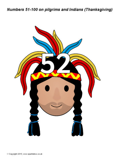 Numbers 51-100 on Pilgrims and Indians (SB11140) - SparkleBox