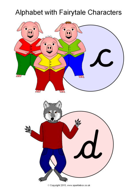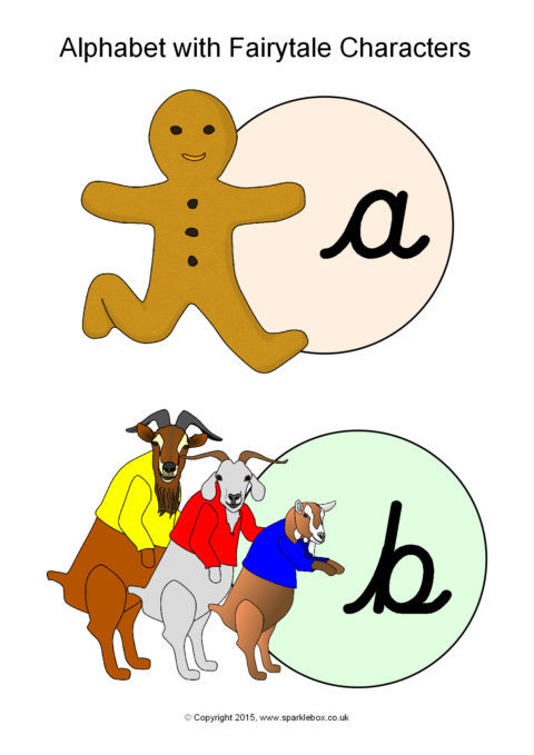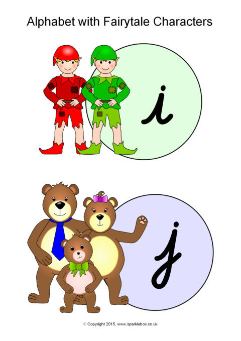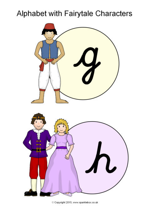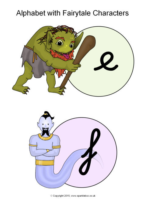 Alphabet with Fairytale Characters – Cursive (SB11177) - SparkleBox