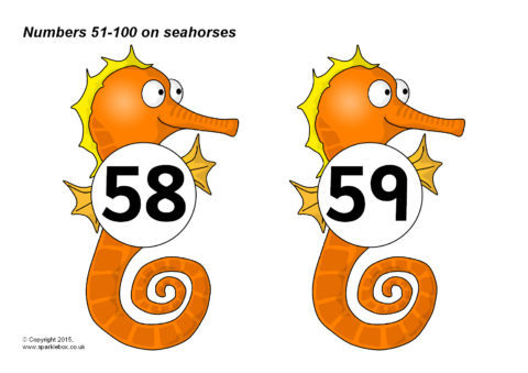 Numbers 51-100 on Seahorses (SB11194) - SparkleBox