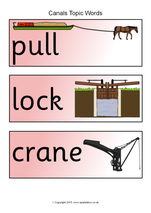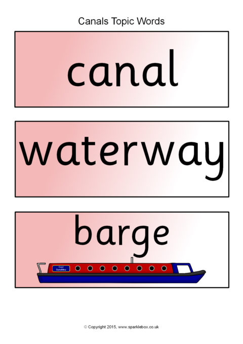 Printable word and picture cards for your classroom ‘Canals’ topic word bank.