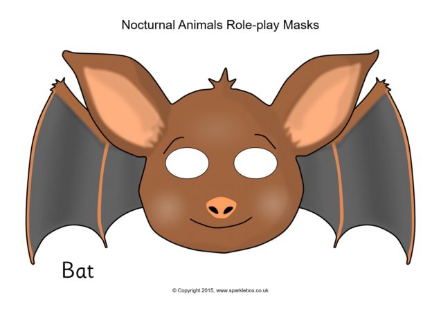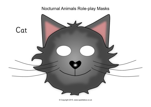 A set of printable masks for role-play featuring various nocturnal animals.  Print, cut out the eye holes and attach a lollipop stick for children to hold to their faces.