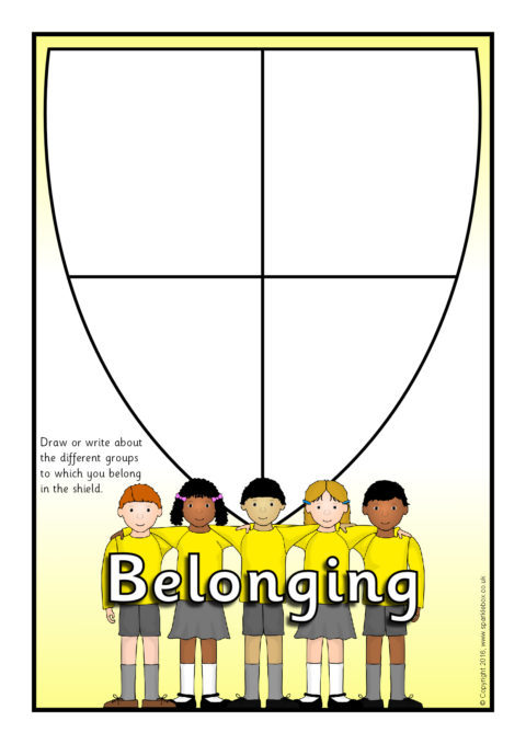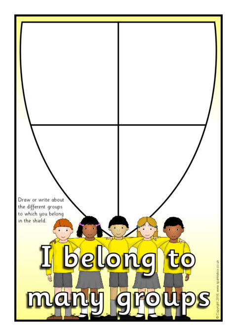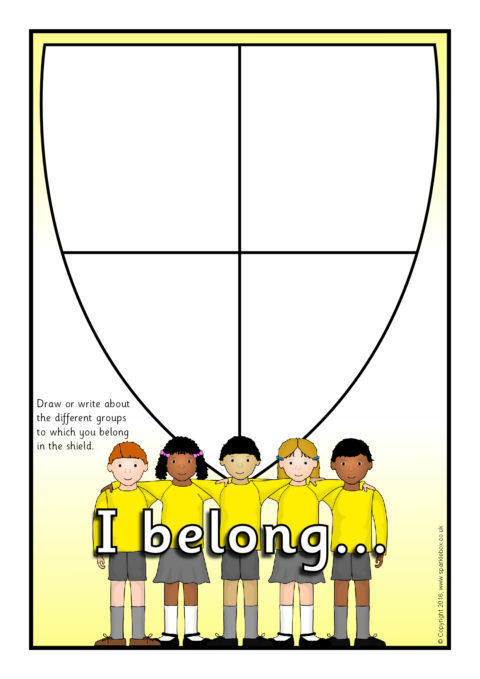 Simple printable page borders featuring a shield divided into 4 for children to write about or draw the different groups they belong to.