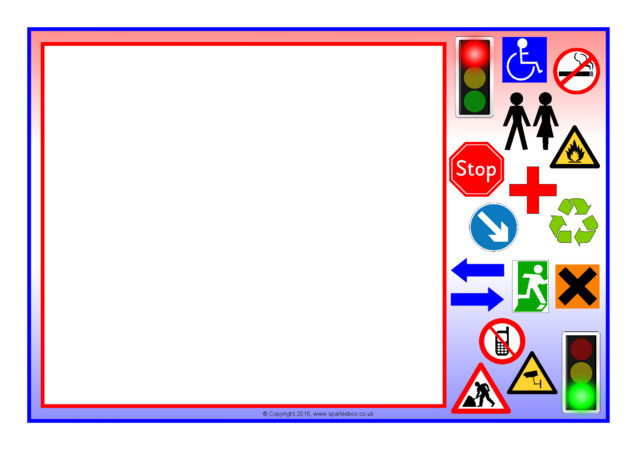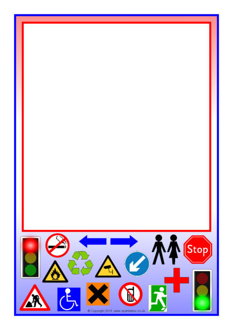 Portrait and landscape A4 page borders featuring common signs and symbols found in the everyday environment.  Includes editable Microsoft Word templates as well as resizable JPG images.
