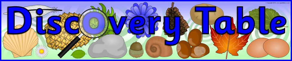 A banner that prints over 3 landscape pages for your classroom 'Discovery Table' where you can place interesting objects for exploration and discussion.