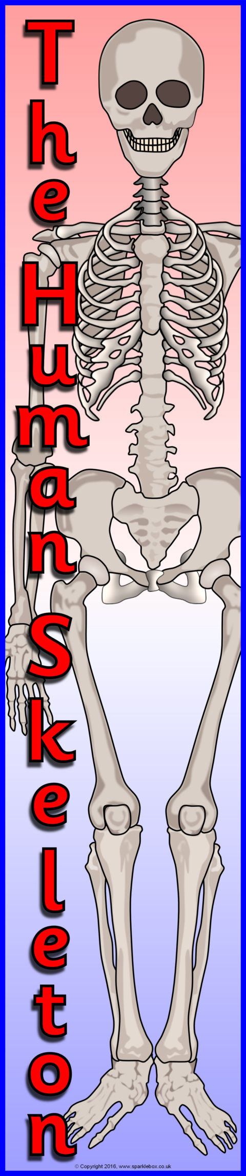 A printable vertical banner for your classroom topic display about the human skeleton.