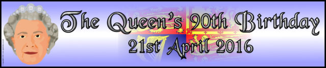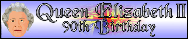 A set of 3 banners that each print over 3 landscape pages for Queen Elizabeth II's 90th Birthday.