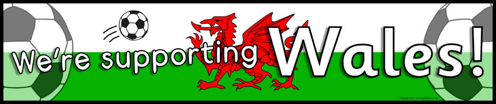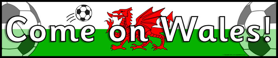 Printable banners with the text ‘Come on Wales!' and ‘We’re supporting Wales!’ for international football tournaments.