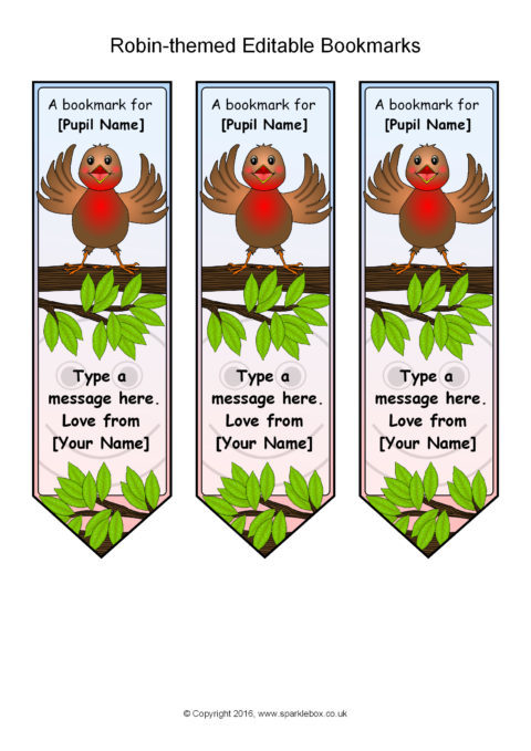 Robin-Themed Editable Bookmarks (SB11609) - SparkleBox