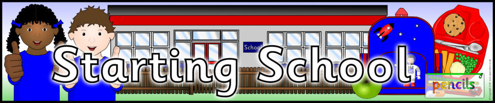 A banner that prints over 3 landscape pages for your classroom display board about starting school.
