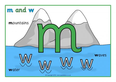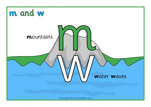 Simple A4-sized posters showing the letters ‘m’ and ‘w’ in a pictorial way. A useful visual reminder to display in your classroom.