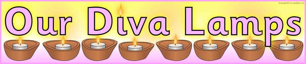 A banner that prints over 3 landscape pages for your Diwali Diva Lamps classroom display.
