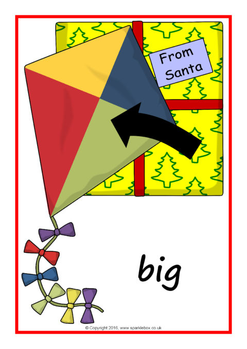 A set of posters featuring a selection of Christmas presents from Santa with simple words to describe them. This resource could be used with the story of ‘Dear Santa’ by Rod Campbell and includes all the gifts featured in the book.
