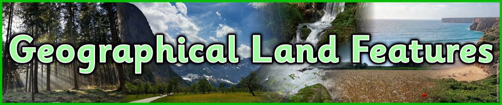 A set of banners that print over 3 landscape pages for your classroom display on geographical land features. The background of the banners includes photos of various geographical features.