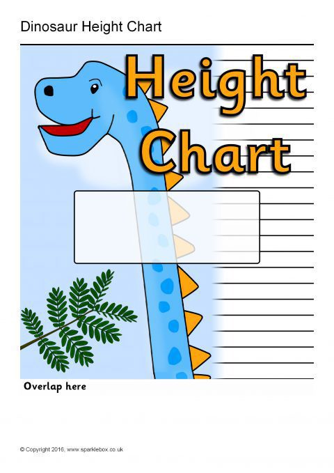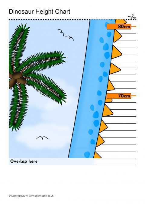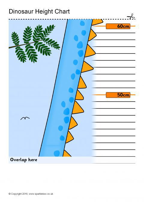 A colourful printable height chart that can be assembled and fixed to a wall. When assembled the chart goes up to 160cm and features a fun (and rather tall!) dinosaur character.