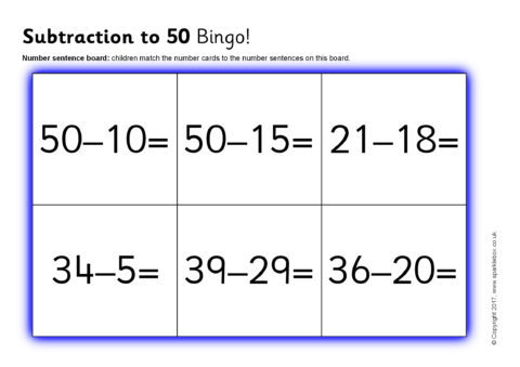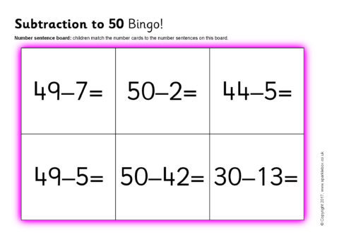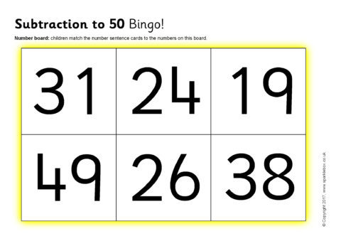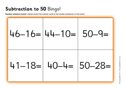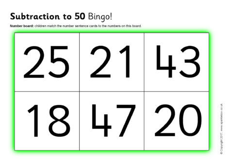 Subtraction to 50 Bingo (SB11801) - SparkleBox