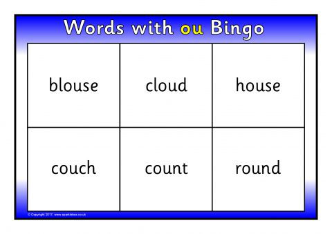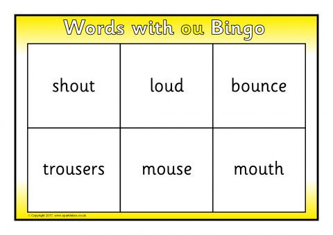 Printable bingo boards and picture cards where children match the pictures to the words that contain the 'ou’ phoneme.