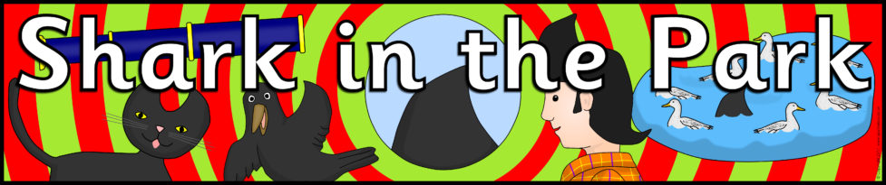 A banner that prints over 3 landscape pages for your classroom wall display about the picture book, 'Shark in the Park' by Nick Sharratt.