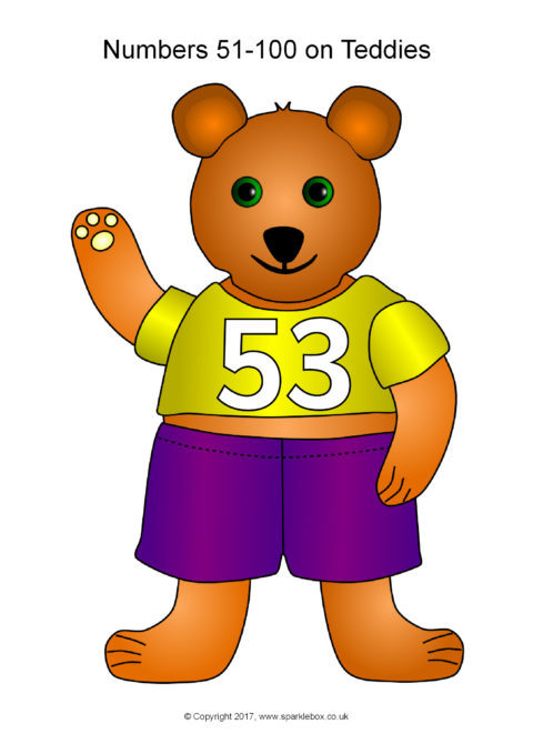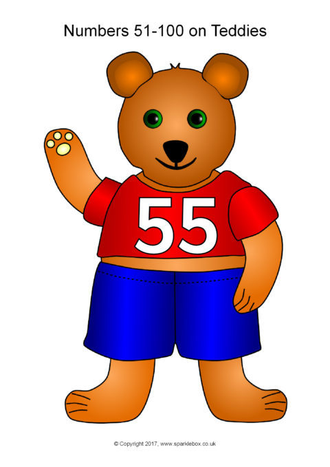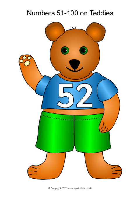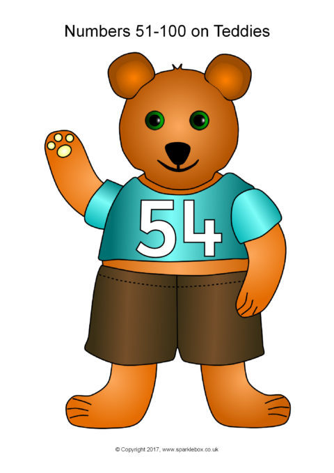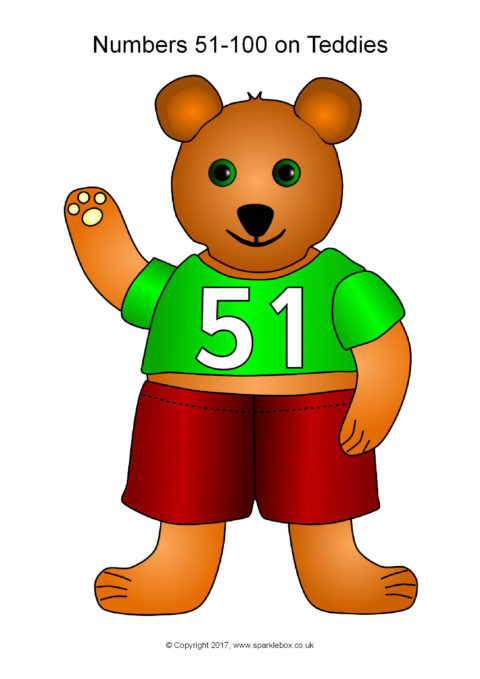 Numbers 51-100 on Teddies (SB11865) - SparkleBox