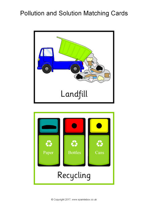 A set of cards featuring various types of pollution and some solutions to help prevent them.  Ideal for making a simple matching activity for your children.
