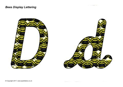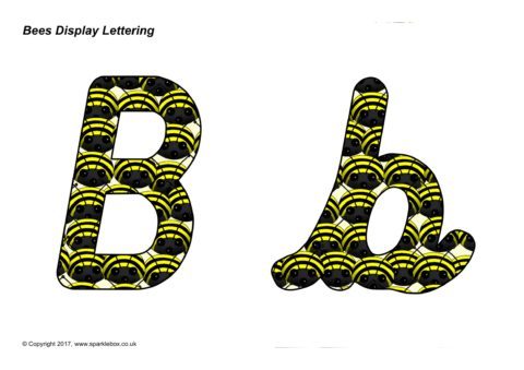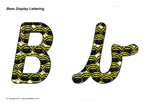 Printable cut-out lettering for your classroom displays featuring cartoon bees.