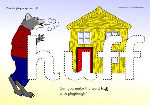 A set of simple printable mats where children make words with ‘ff’ and related objects from playdough.