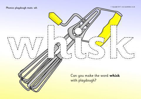 A set of simple printable mats where children make words beginning with ‘wh’ and related objects from playdough.