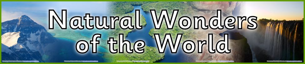 A banner featuring photos of some natural wonders of the world for your classroom topic display about the same.