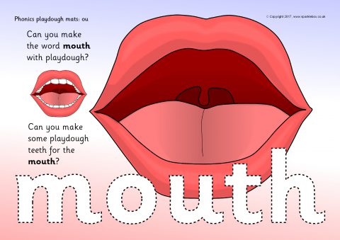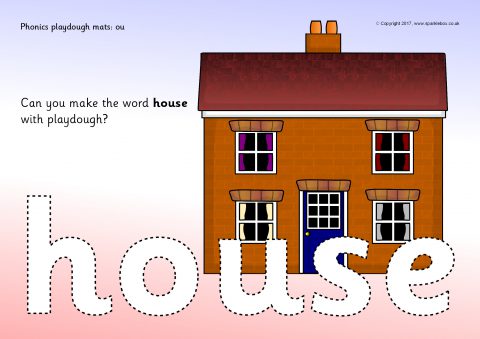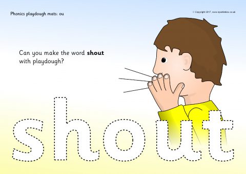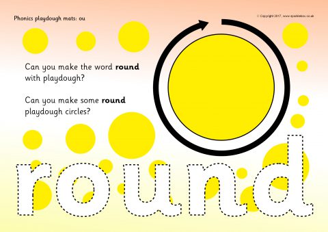 A set of simple printable mats where children make words with ‘ou’ and related objects from playdough.