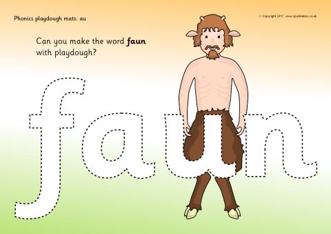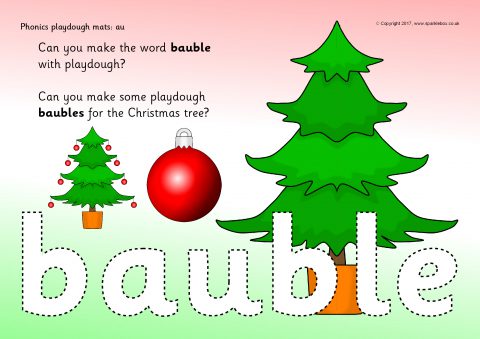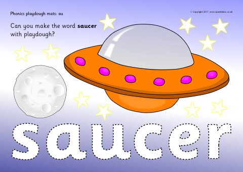 A set of simple printable mats where children make words with the ‘au’ sound and related objects from playdough.