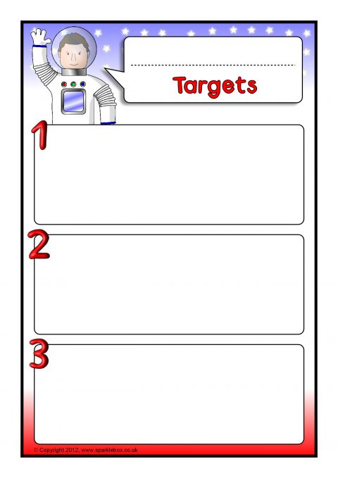 Space-Themed Editable Pupil Target Sheets (SB7028) - SparkleBox