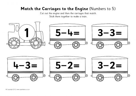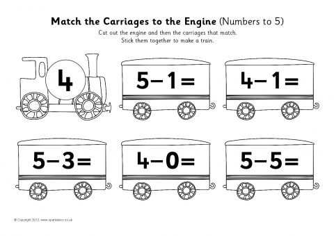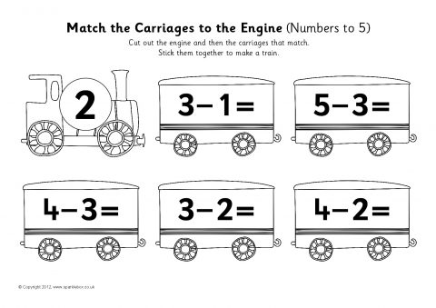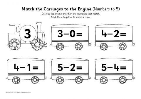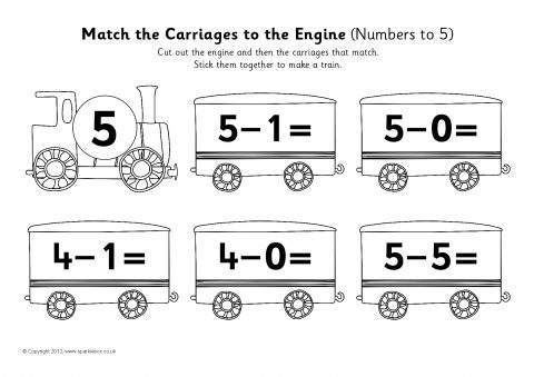 Train Subtraction Cut and Stick Activity (numbers to 5) (SB7053) - SparkleBox