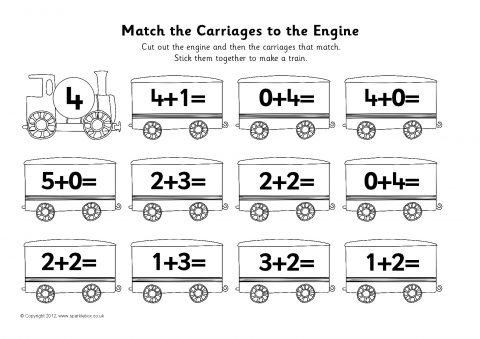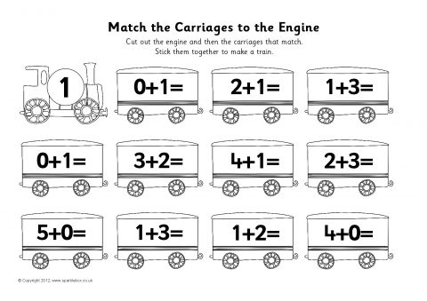 A simple cut and stick activity where children cut out the engines and carriages that match and stick them together to make a train.