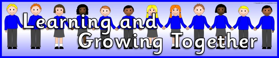 A colourful banner for your classroom display about "Learning and Growing Together".