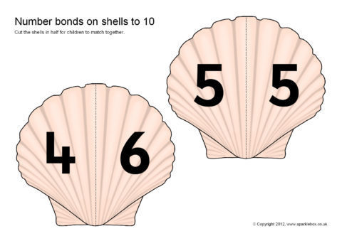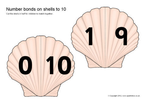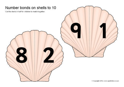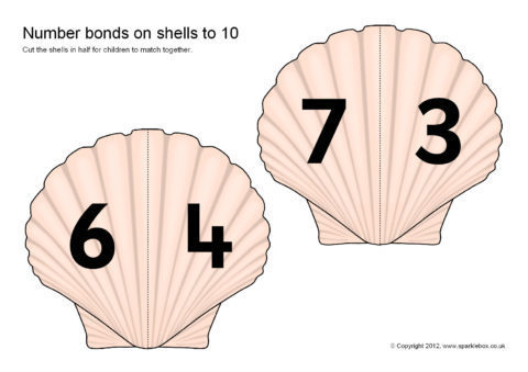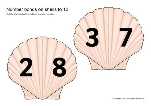 Create an activity where children match together the sea shell halves to make number bonds to 10. Print out, laminate and cut the shells in half.