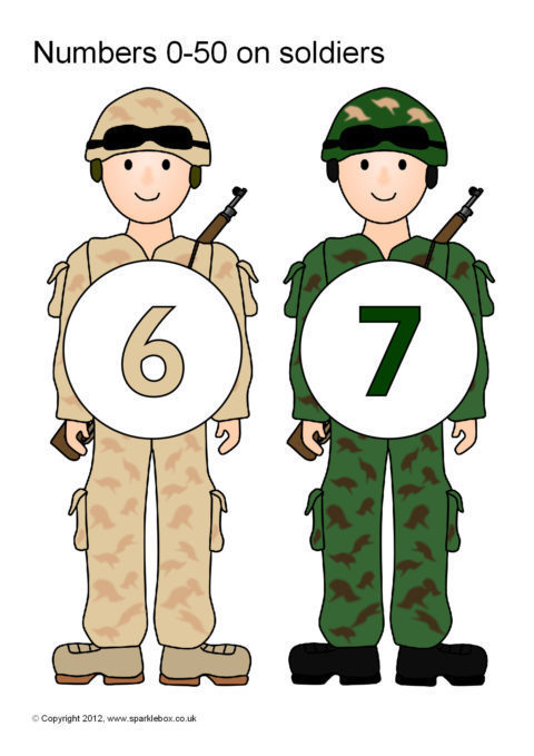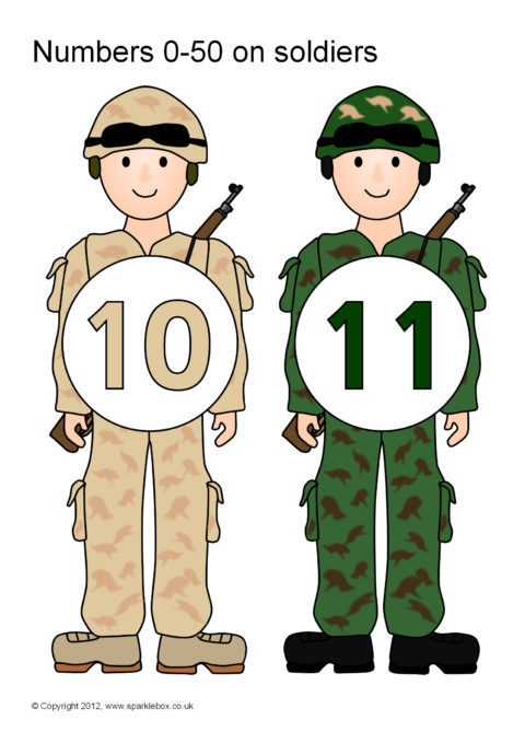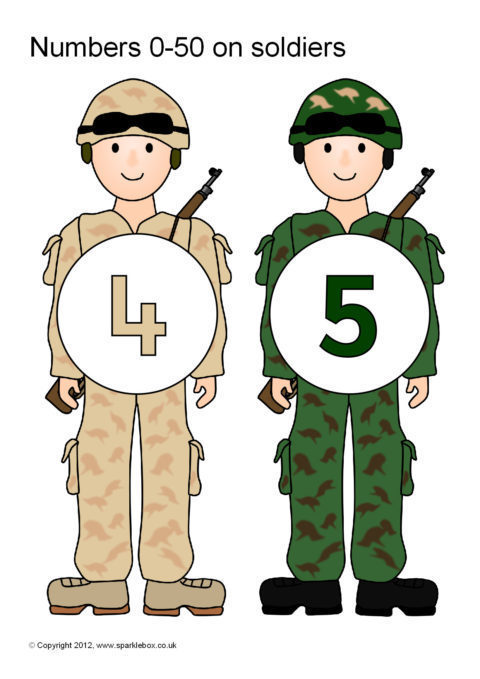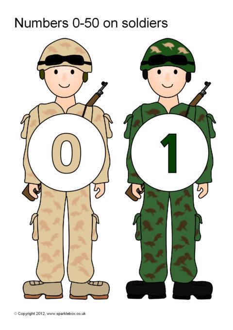 Numbers 0-50 on Soldiers (SB7088) - SparkleBox