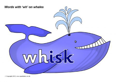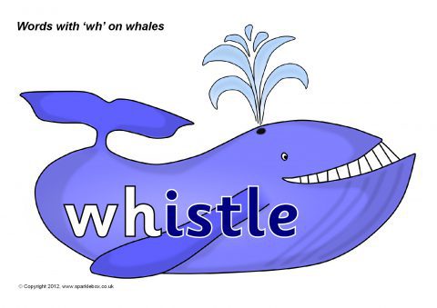 Words beginning with the ‘wh’ phoneme presented on cartoon whales.