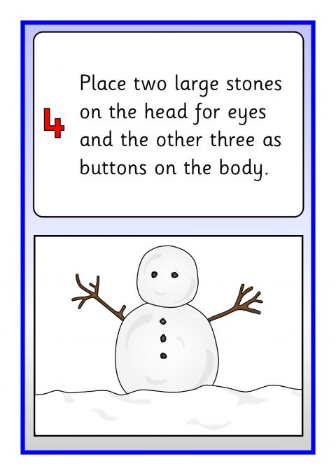 A set of instruction visual aids showing how to build a simple snowman. Ideal for teaching about writing instructions.