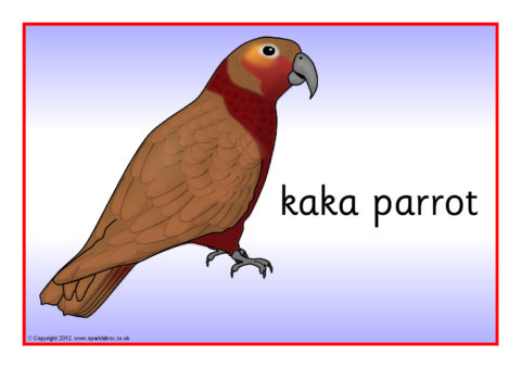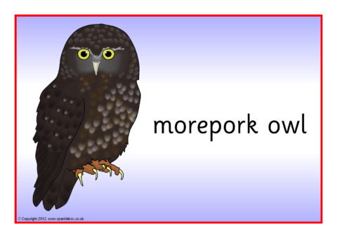 A set of simple A4-sized posters featuring different New Zealand animals and their names in clear text.