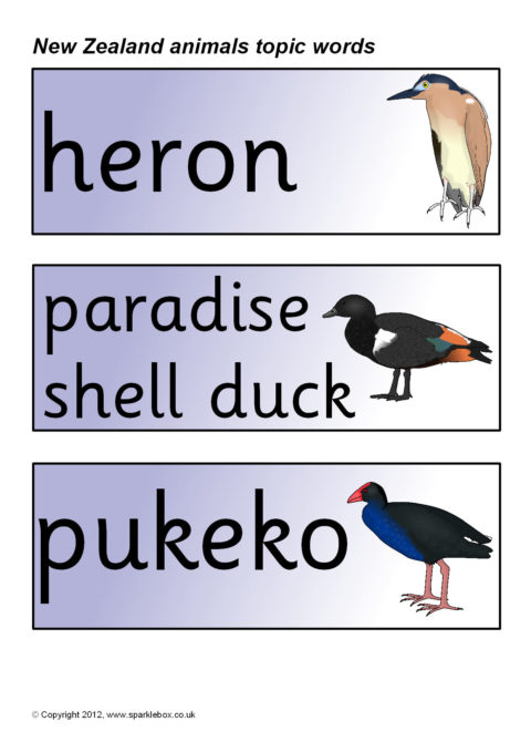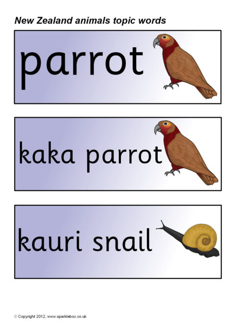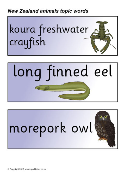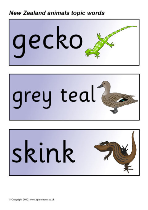 New Zealand Animals Topic Word Cards (SB7167) - SparkleBox