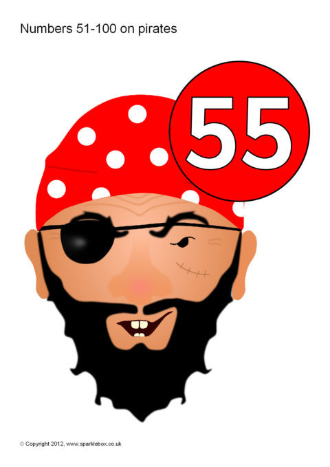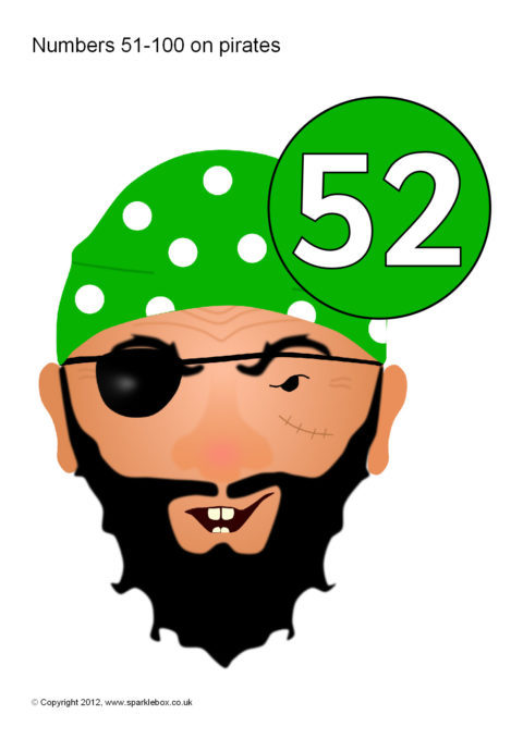 Numbers 51-100 on Pirates (SB7178) - SparkleBox