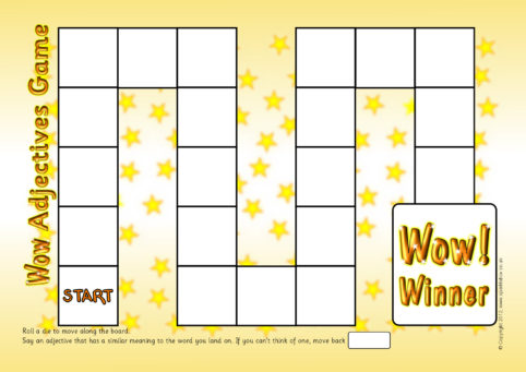 A simple board game where children think of adjectives that mean similar to the words they land on. A great way for getting pupils to increase their vocabulary and introduce new ‘wow’ words. Includes editable version to add your own words as appropriate.