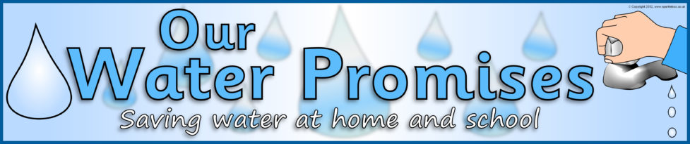 A colour banner with the title, ‘Our Water Promises’ for a display on saving water.